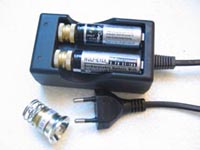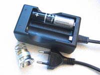 * 1 x 3.7V Wolf-Eyes lamp assembly with contact spring 1 x CH-02 fast smart AC charger (DH-02 DC charger optional)