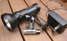 * Rechargeable HID tactical flashlight with adjustable beam (choose the optimal beam as searchlight or spotlight)